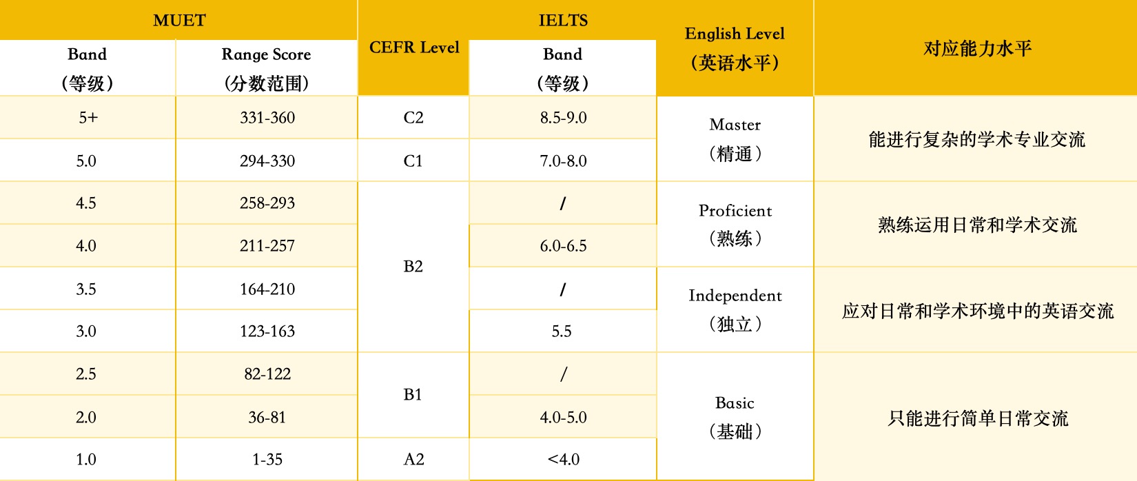 MUET考试分为四个部分,全面考察考生的英语能力。